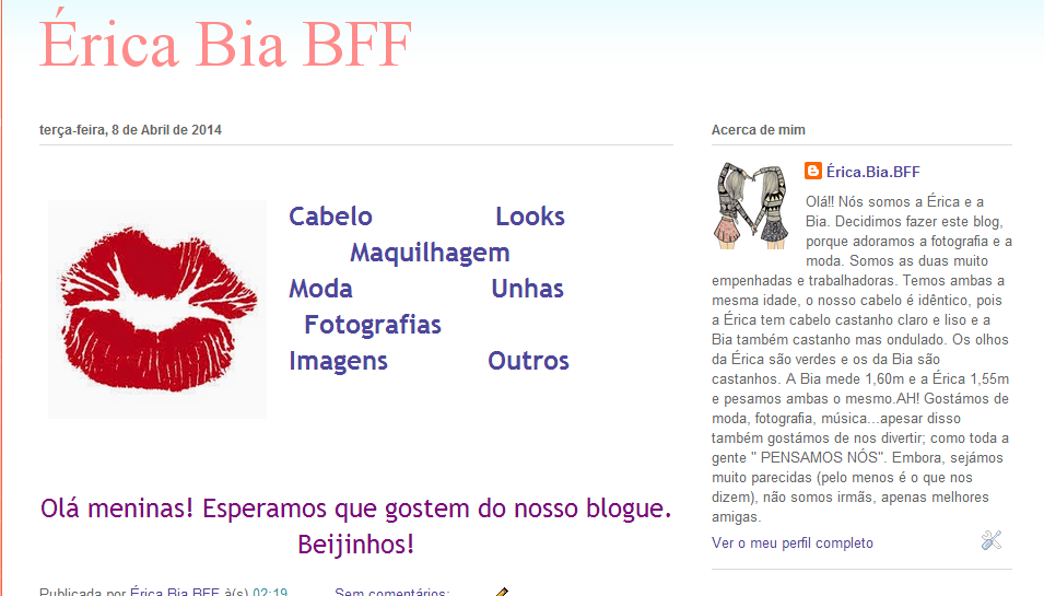 Olá meninas! Era só para avisar que temos outro blogue. Se quizerem entrem aqui: https://ericabiabff.blogspot.pt/